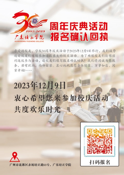 亲爱的校友,学校30周年校庆活动于2023年12月9日举行,我们诚挚邀请校友们返校参加这次盛大的校庆活动。为了确保校友们能够顺利返校参与活动,我们特别准备了此指南,希望能为您提供参考和指引,我们将竭诚为您服务,若有疏漏,尚祈谅察。
